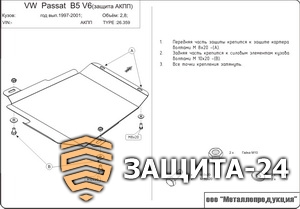 → ЗАЩИТА АКПП ДЛЯ VOLKSWAGEN PASSAT B5, 1 996-2 005, 3B5, СТАЛЬ