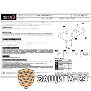 → Защита {АКПП} VOLKSWAGEN Touareg (2006 - 2010) 3,0 TDI (кузов: 7LA, 7L6, 7L7) сталь
