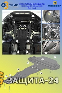 Защита (двигатель, КПП) Audi Q7 2006-; V=3,0 D, сталь. Артикул: 10101