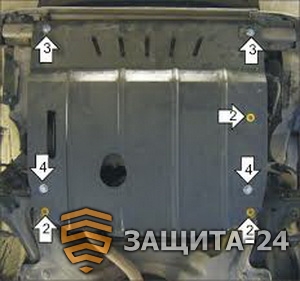 → Защита (двигатель, КПП) Chevrolet Cavalier 1996-2003; V=2,2, сталь 2 мм, [АКПП вес 10,88кг, щитов: 1