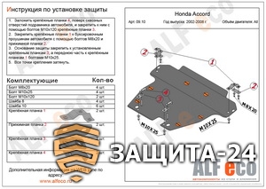 Защита ДВС иКПП Honda Accord VII 2002-2007/ Elysion 2004-2013. Артикул: Alf09.10