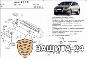 → Защита {картера} AUDI Q 7 (2006 - 2014) 3,0 TDI; 4,2 TDI (кузов: 4) алюминий