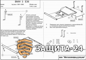 → Защита {картера} BMW 3ER (1990 - 2000) 1,6; 1,8; 2,0; 2,3; 2,5; 2,8; 3,0 (кузов: Е36