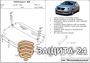 Защита картера для VOLKSWAGEN Passat B6, 2 005-2 011, 3C2 ; B6,. Артикул: 26.0932