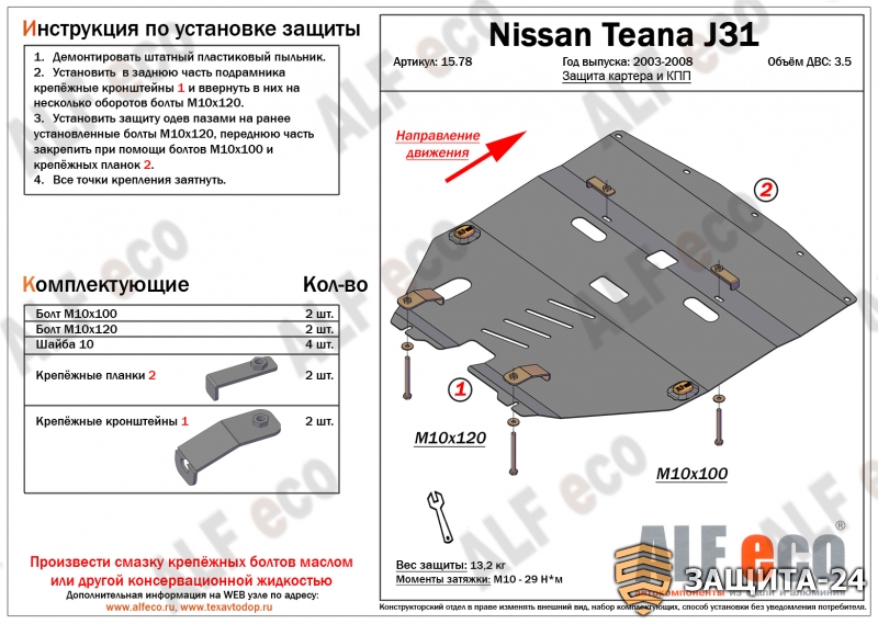 → Защита картера двигателя и кпп для Nissan Teana, J31 V - 3,5 2003-2008/ Pressage U31