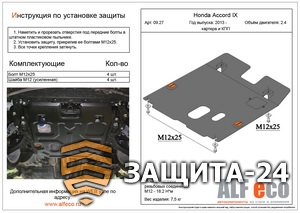 → Защита картера двигателя и КПП Honda Accord IX 2013- V-2,4