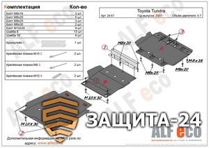 Защита картера и КПП (3 части) Toyota Tundra Double Cab 2007 - 2013 5.7 . Артикул: alf 24.61
