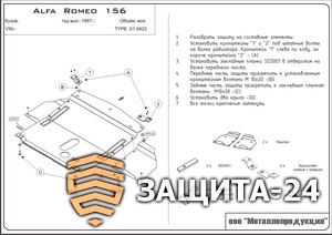 Защита {картера и КПП} ALFA ROMEO 156 (1997 - 2003) 1,6; 1,8; 2,0; 2,5; 1,9d; 2,4d (кузов: 932) стал . Артикул: 01.0423