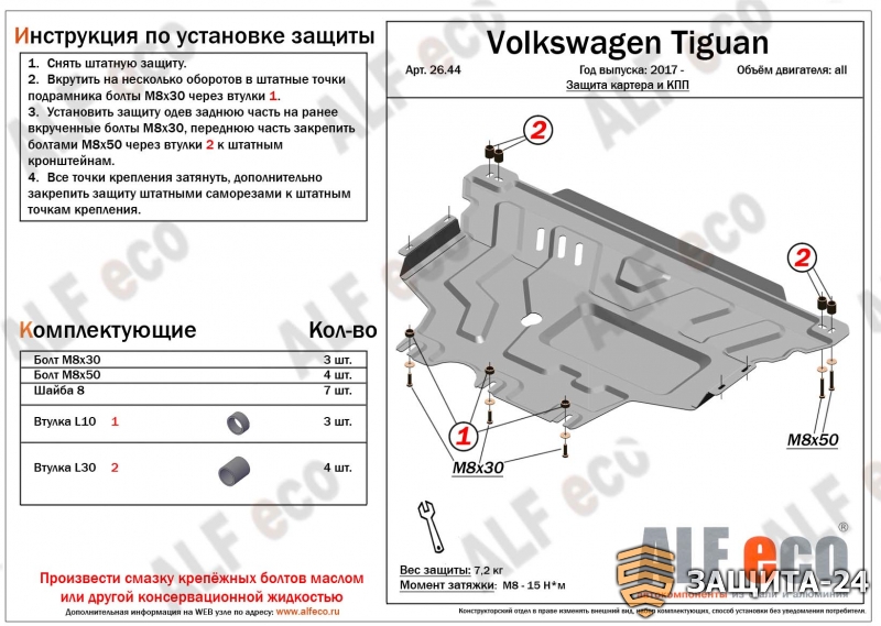 → Защита картера и КПП Audi Q3 18-/Skoda Kodiaq 2017- V-all/VW Tiguan 2017-