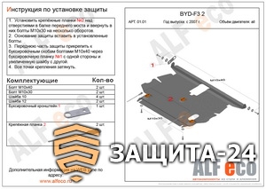 Защита картера и кпп BYD F3 2005-2012 V-all /Toyota WILL VS 2001-2004 all. Артикул: Alf01.01
