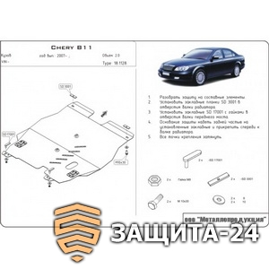 → Защита {картера и КПП} CHERY Mikado (2007 -) 2,0; 2,4 (кузов: В11; B14) сталь 2 мм, Гибка, 12кг., 1