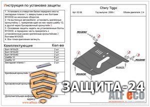 → Защита картера и КПП Chery Tiggo 2006- 2,4