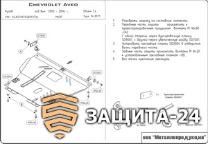 → Защита картера и КПП, CHEVROLET Aveo (T 200), 1,2; 1,4, 2003 - 2006, сталь 2 мм