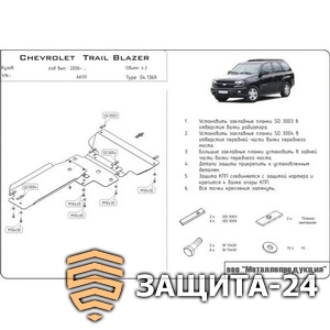 Защита картера и КПП, CHEVROLET Trail Blazer (KC (GMT800)), 4,2, 2001 - 2012, сталь 2,5 мм. Артикул: 04.1369