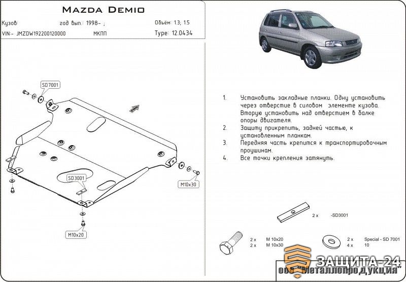 → Защита картера и КПП для Mazda Demio 1996-2001 DW#/ Mazda 121