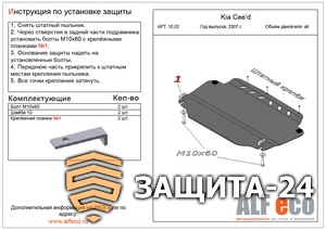 Защита картера и КПП Kia Ceed 2007-2011 all. Артикул: Alf10.02