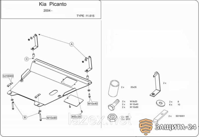 → защита {картера и КПП} KIA Picanto (2004 - 2008) 1,0; 1,1 (кузов: BA) сталь 2 мм, Гибка, 10,4кг., 1