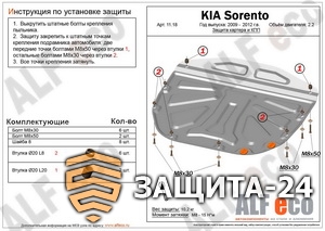 → Защита картера и КПП Kia Sorento 2009-2012 2,2