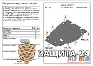 → Защита картера и КПП Lexus GS 350 (без пыльника) 2007 - 2011