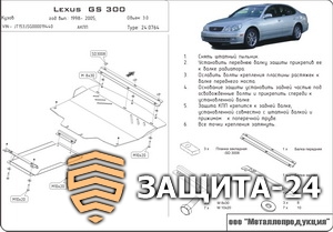 Защита {картера и КПП} LEXUS GS300 Европа (1997 - 2004) 3,0 (220hp) ; сталь 2 мм, Гибка, 14,7кг., 2. Артикул: 24.0764