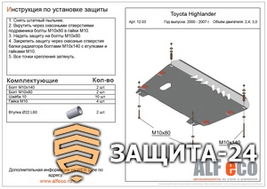 → Защита картера и КПП Lexus RX 300/330/350 2003-2008 V-3/Toyota Highlander (XU20) 2000-2007 V-3,0;3,3