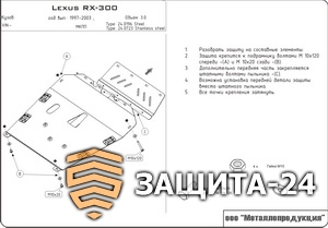 Защита {картера и КПП} LEXUS RX300 (1997 - 2003) 3 (кузов: XU1) сталь . Артикул: 24.0196