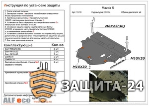 Защита картера и КПП Mazda 5 2011- all. Артикул: Alf13.10