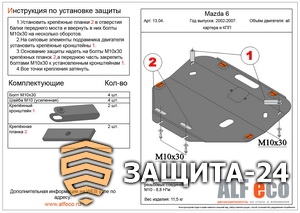 → Защита картера и КПП Mazda 6 2002-2007 all /Atenza GG 2002-2007 V-1,8;2,0;2,3 2wd/FAW Besturn B50 2012-2017/FAW Besturn X80 2021- V-2,0