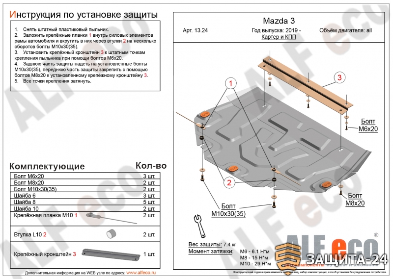 → Защита картера и КПП Mazda CX-3/CX-30 2019- V-2,0/Mazda 3 2019- 4generation/ Mazda 2 (DJ) 2019- V-1,5 2WD