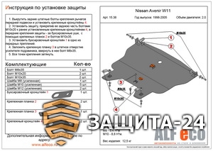 → Защита картера и КПП Nissan Rnessa/ Serena C24/ Liberty/Expert/Avenir W11 1998-2005 2,0/