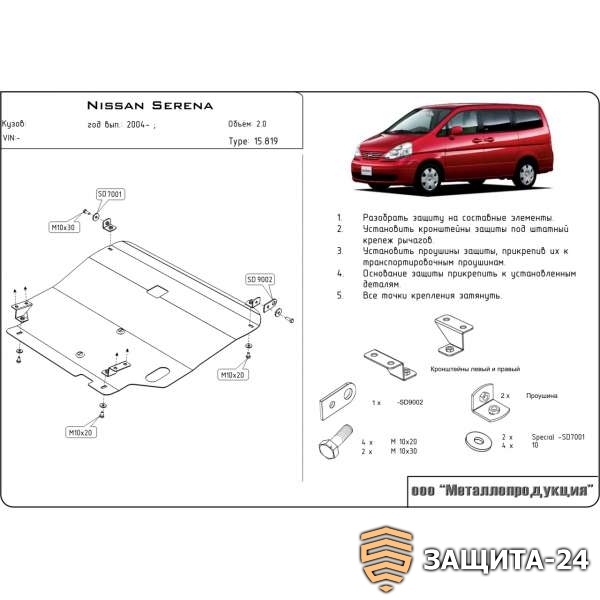 → защита {картера и КПП} NISSAN Serena полный привод (1999 - 2005) 2,0 4wd (кузов: C24) сталь 2,5 мм,