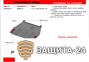 → Защита картера и КПП Rival, , Chevrolet Aveo V - 1.6, МКПП, 2012-, штатный крепеж, алюминий, ()