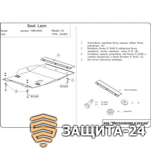 → Защита {картера и КПП} SEAT Leon (2004 - 2006) 1,6 (кузов: 1P1) сталь 2 мм, Гибка, 12,2кг., 2 листа