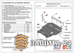 Защита картера и КПП Skoda Octavia Tour 1.4; 1.6; 1.9; TD 2009- сталь. Артикул: alf20.05