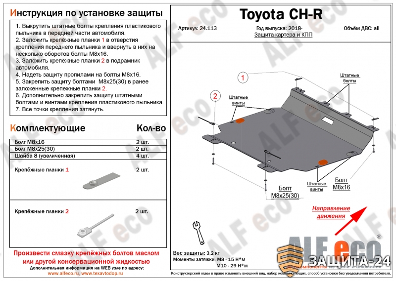 Защита картера и КПП Toyota C-HR 2016-2019. Артикул: Alf24.113