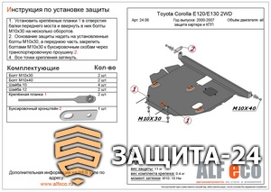 Защита картера и КПП Toyota Corolla/ Matrix 2WD/Allex/Runx/Fielder. Артикул: alf 24.06