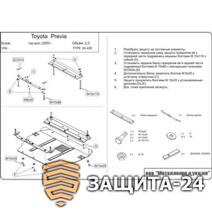 Защита {картера и КПП} TOYOTA Estima/Previa (2000 - 2006) 2,0; 2,4 (кузов: ACR3) сталь. Артикул: 24.0428