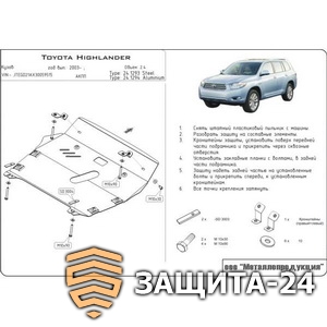→ Защита {картера и КПП} TOYOTA Highlander/Kluger (2000 - 2007) 2,4 (кузов: U20) алюминий