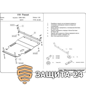 → Защита {картера и КПП} VOLKSWAGEN Passat B3, B4 (1988 - 1996) 1,9D (кузов: 3A2, 35i) сталь