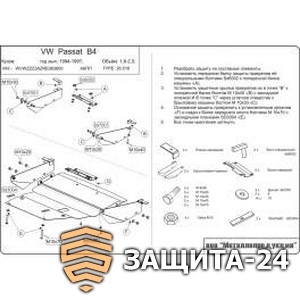 → Защита {картера и КПП} VOLKSWAGEN Passat B3, B4 АКПП (1988 - 1996) 1,8; 2,0 (кузов: 3A2, 35i) сталь