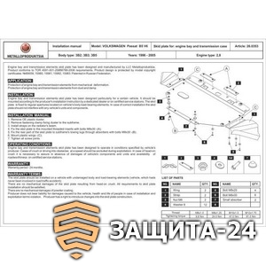 → Защита {картера и КПП} VOLKSWAGEN Passat B5 V6 (1996 - 2005) 2,8 (кузов: 3B2 ; 3B3 ; 3B5 ) сталь
