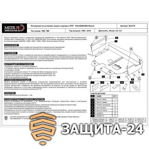 → Защита {картера и КПП} VOLKSWAGEN Sharan (1995 - 2010) 2,0; 2,5 (кузов: 7M6, 7M8, 7M9) сталь