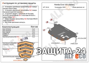 → Защита картера и кппHonda Civic VIII (sedan) 2005-2011 V-all