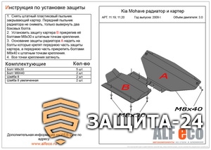 Защита картера Kia Mohave 2009- 3.0. Артикул: Alf11.20