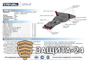→ Защита картера Rival, , BMW X1 18i/2WD, 2009-, крепеж в комплекте, алюминий, ()