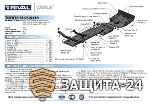 → Защита картера Rival, , Toyota FJ Cruiser V - 4.0, 2010-, крепеж в комплекте, алюминий, (часть 1)