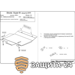 → Защита {картера} SKODA Superb (2002 - 2008) 1,8; 2,0; 2,8; 1,9D; 2,0D;2,5D (кузов: 3U4) сталь 2 мм,