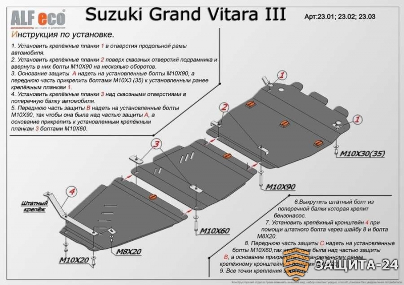 Защита картера Suzuki Grand Vitara III 2005-2014. Артикул: Alf23.01