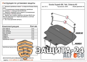 Защита картера Yeti/Pas B6 /OCTAV09-13 B 09-. Артикул: Alf20.12