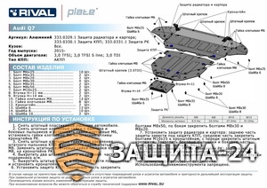 → Защита раздатки Rival, , AUDI Q7 V - 3.0, 3.0 S-Line, 2015-, крепеж в комплекте, алюминий,